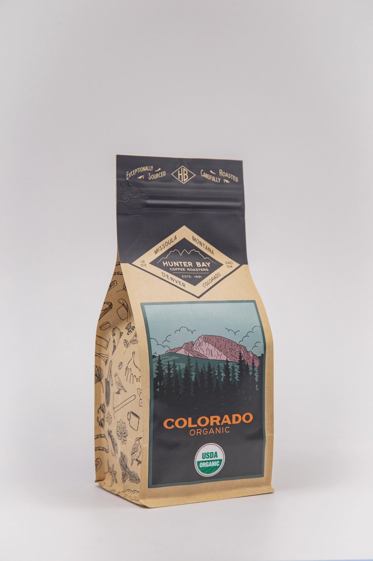 After 25 years of roasting exceptional coffee in Montana, Hunter Bay celebrated their anniversary by opening up a second roaster and coffee bar in Arvada, Colorado! They're pumped, so pumped that they whipped together an incredible organic medium roast, balanced and bold, with enough bold flavor to get you up that crag, that mountain, or maybe just that commute to the office.    Tasting Notes: * Aroma – Dried fruit with accents of spice and sugar. * Acidity – Modest acidity with candied fruit brightness. * Flavor – Dried apricot & black cherry with accents of cinnamon & semi-sweet chocolate. * Body – Rich and thick with extended full-bodied flavor.  * Aftertaste – Dried fruit, chocolate and burnt sugar. * Balance – Complex three-coffee balance of dried fruit, chocolate and caramelized sugar. ORIGIN: Proprietary blend ROAST: Medium AROMA: Medium – Dried Fruit BODY: Full-Bodied, Rich & Thick BRIGHTNESS: Medium Brightness